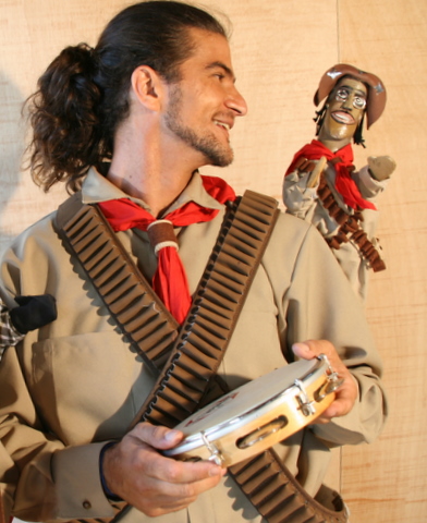 Ator Christian Matias e sua “Mala dos mamulengos”